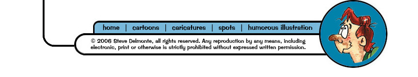 Welcome to the Steve Delmonte Studio Website, a sample collection of previously published cartoons, caricatures and humorous illustrations. Humorous art is available upon request for editorial, corporate, advertising or electronic media as originals or reprints. The samples on this website, although previously published, are available to be purchased as printed or electronic reprints.